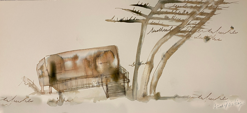 Je suis tranquille plus d’une bonne moitié de l’année, la saison touristique est assez courte dans l’arrière-pays, le froid, c’est le principal problème, à ce moment-là, je privilégie les constructions en dur, j’ai le petit soufflant quand vraiment ça ne va pas, mais la plupart du temps bien couverte cela me va, je veille quand même à varier les zones, les types de constructions et je change de gamme sans état d’âme, sans déplaisir, le principal c’est que je voyage, car il y a des zones dans le campement, plus ou moins escarpées, au soleil, à l’ombre, isolées ou dans une zone plus dense, plus ramassée comme celle des mobiles, je passe comme la gardienne, ils disent que je surveille et c’est vrai que je surveille, mais pas comme ils le croient, je suis surtout ici pour être quelque part, habiter ce qui ressemble encore un peu à de la nature, mais une nature contenue, bien sage, un peu comme un grand square en plus sauvage et ses bâtiments qui attendent, les blocs sanitaires calfeutrés, la piscine vidée avec sa bâche tendue de feuilles et d’herbes sèches, le garde-fou métallique qui la ceint, la cahute de la réception, le snack-bar en béton, les lampadaires toujours éteints, l’eau des bornes coupée à certains moments de l’année, à la rigueur on aurait pu imaginer quelqu’un qui vive ici reclus dans un mobile-home, homme immobile, sans déranger, en payant un petit loyer, mais c’est pas le genre des propriétaires d’avoir des marginaux qui risqueraient de squatter, pas de ça ici, déjà que moi ils me tolèrent.